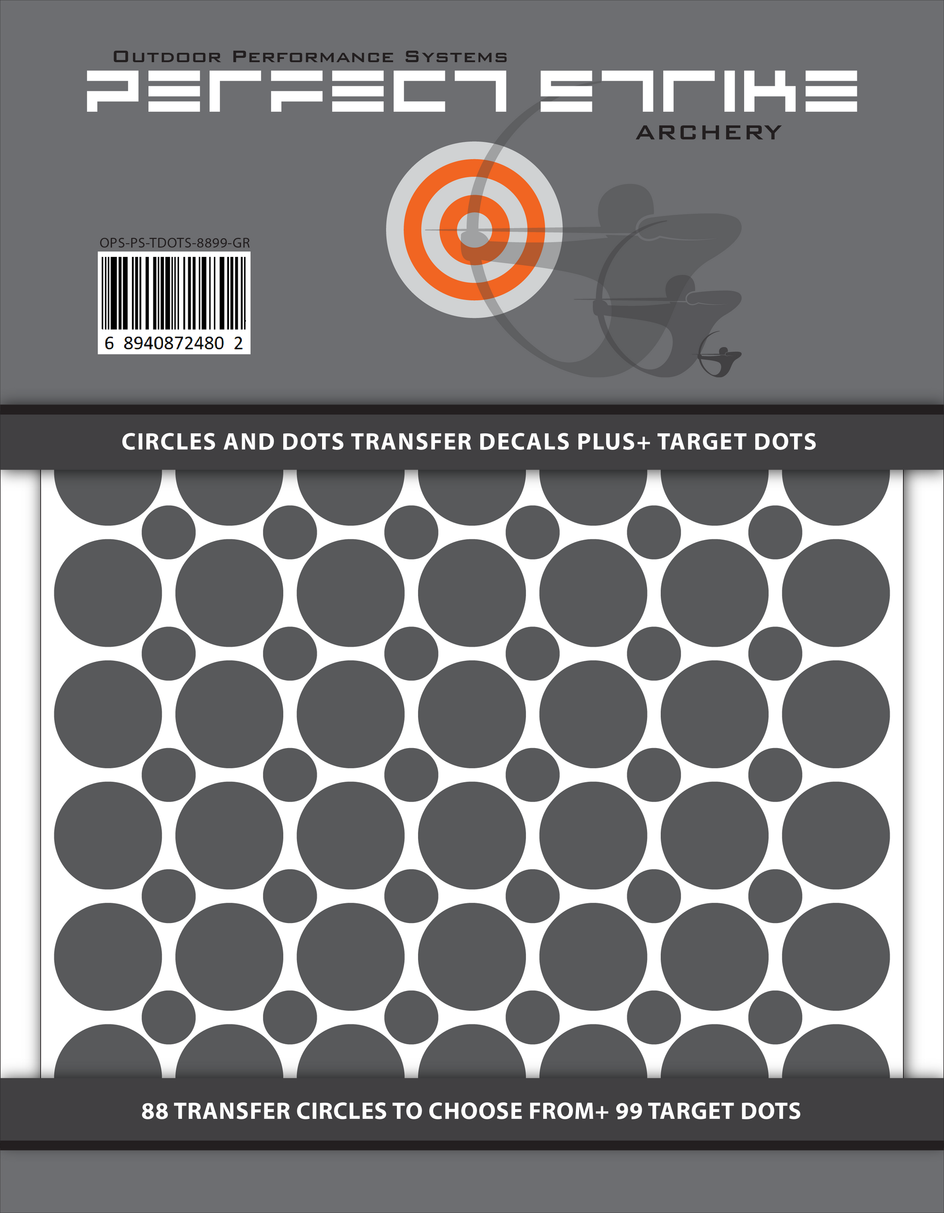 Perfect Strike Archery Circles and Dots Transfer Decals for Scope Lenses + Peel and Stick Target Dots. Practice or Competition. Adhesive Backed Vinyl Decals. (Grey)