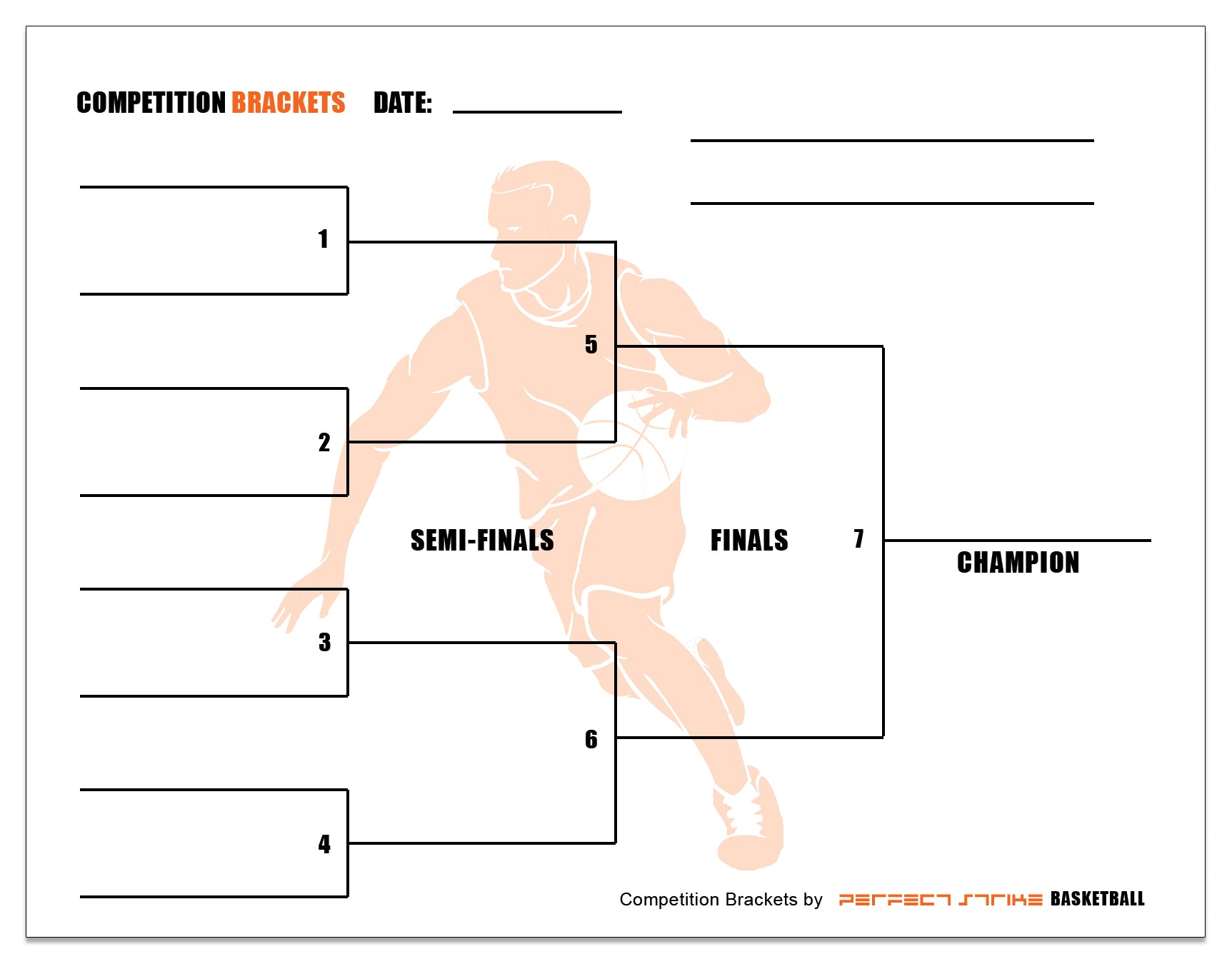Perfect Strike Competition Brackets for Team tournaments or Skills competitions. Sheet Brackets for up to 8 participants. BASKETBALL.