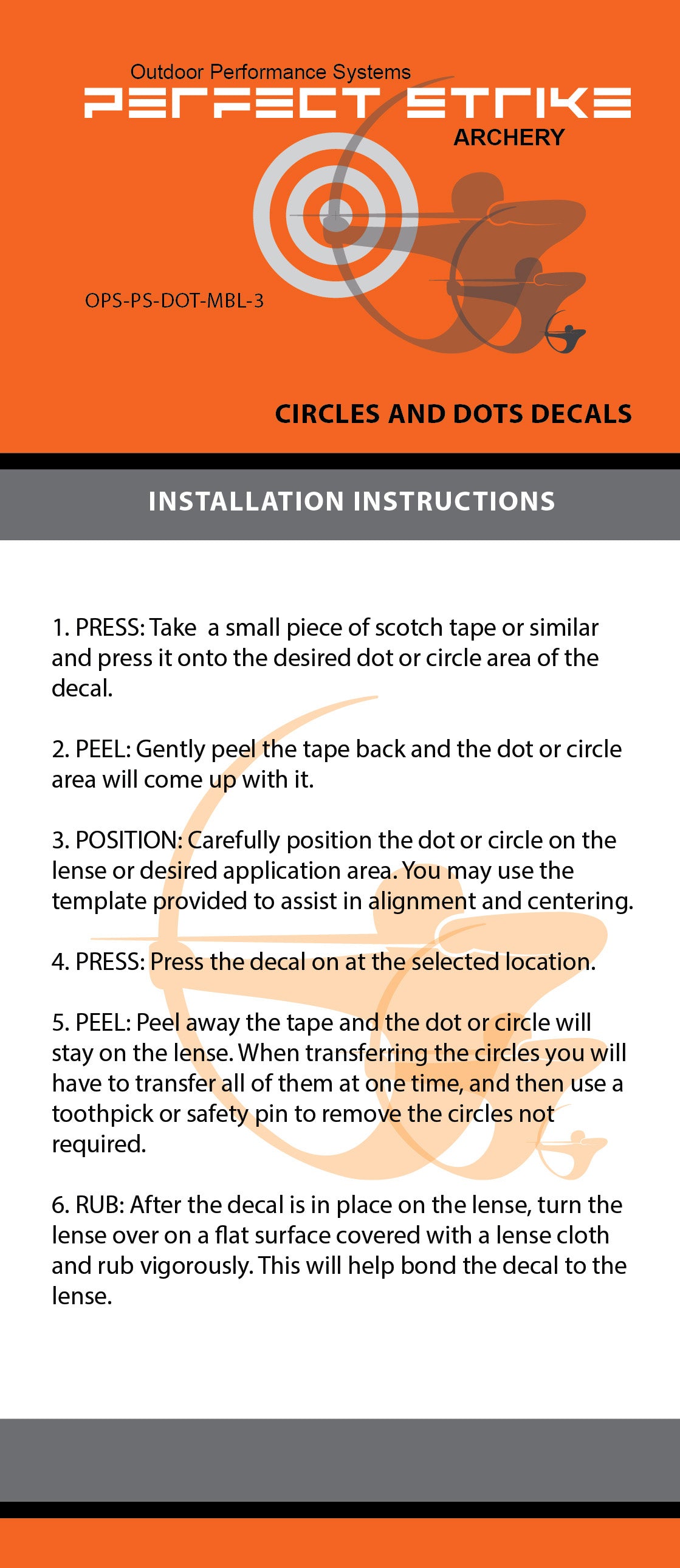 - CIRCLES & DOTS DECALS : Perfect Strike Archery adhesive backed vinyl decals for scope lenses. Each set of decals includes instruction for applying circle or dot shape to scope lens.