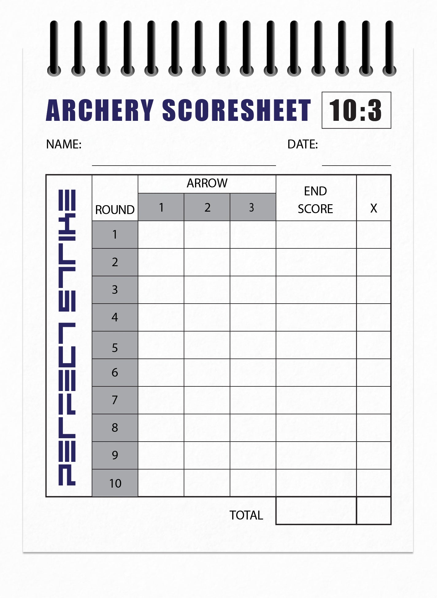 - ARCHERY SCOREBOOK - Perfect Strike high quality, heavy duty scorebook. 4.25" x 5.5". Each book includes 50 scoring records on 25 heavy paper sheets. Scoring diagrams included. Perfect Strike scorebook design, for the serious or emerging archer. Great for practice and as and aid for getting better. System 10:3. 10 Round - 3 Arrow Scoresheet.