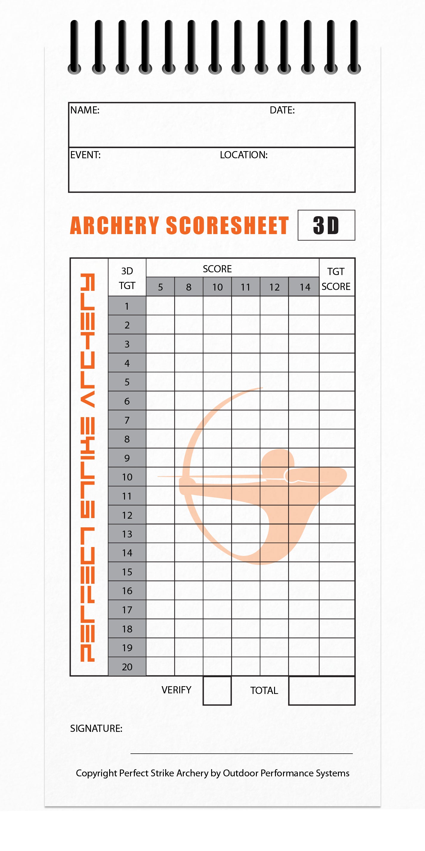 - ARCHERY SCOREBOOK - Perfect Strike high quality, heavy duty scorebook. 8.5" x 3.5". Each book includes 50 scoring records on 25 heavy paper sheets. Scoring diagrams included. Perfect Strike scorebook design, for the serious or emerging archer. Great for practice and as and aid for getting better. Designed for ASA and IBO scoring rules.