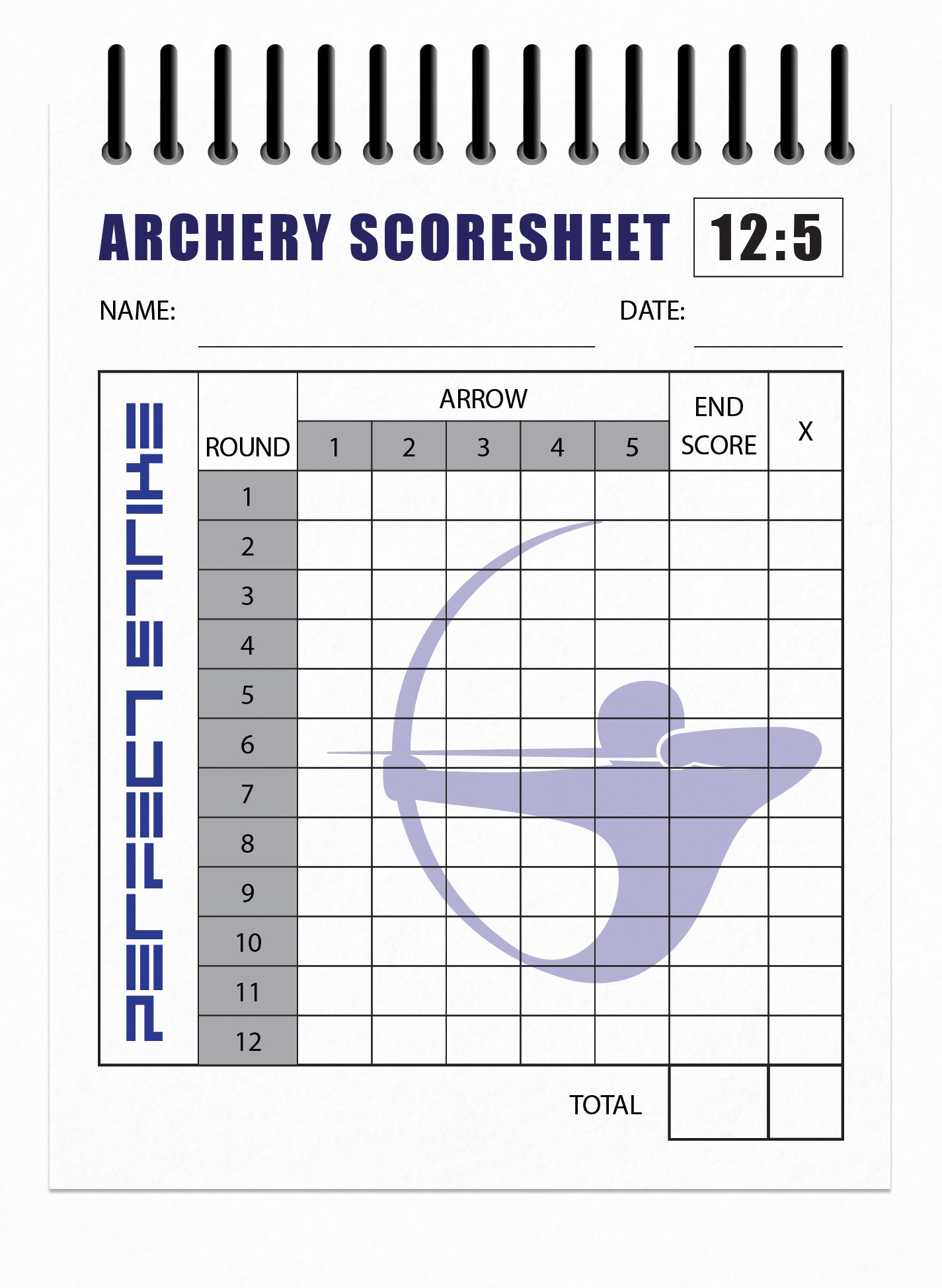 - ARCHERY SCOREBOOK - Perfect Strike high quality, heavy duty scorebook. 4.25" x 5.5". Each book includes 50 scoring records on 25 heavy paper sheets. Scoring diagrams included. Perfect Strike scorebook design, for the serious or emerging archer. Great for practice and as and aid for getting better. System 12:5. 12 Round - 5 Arrow Scoresheet.
