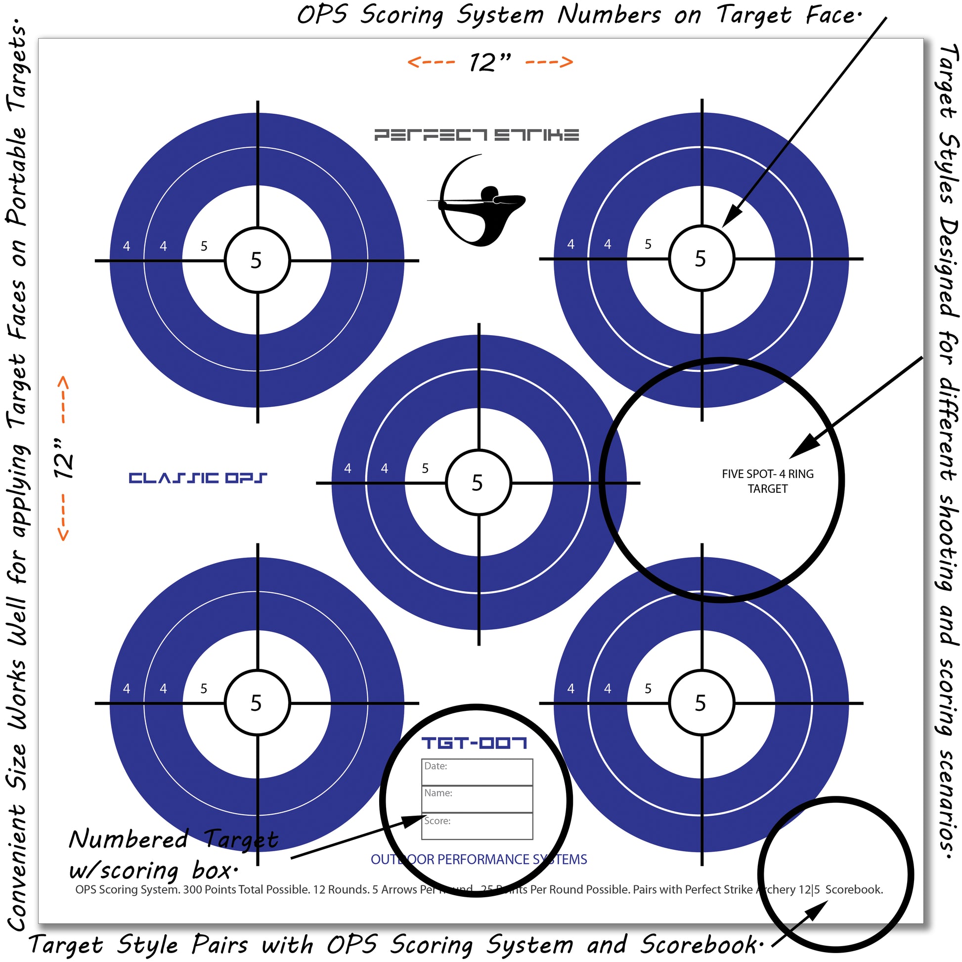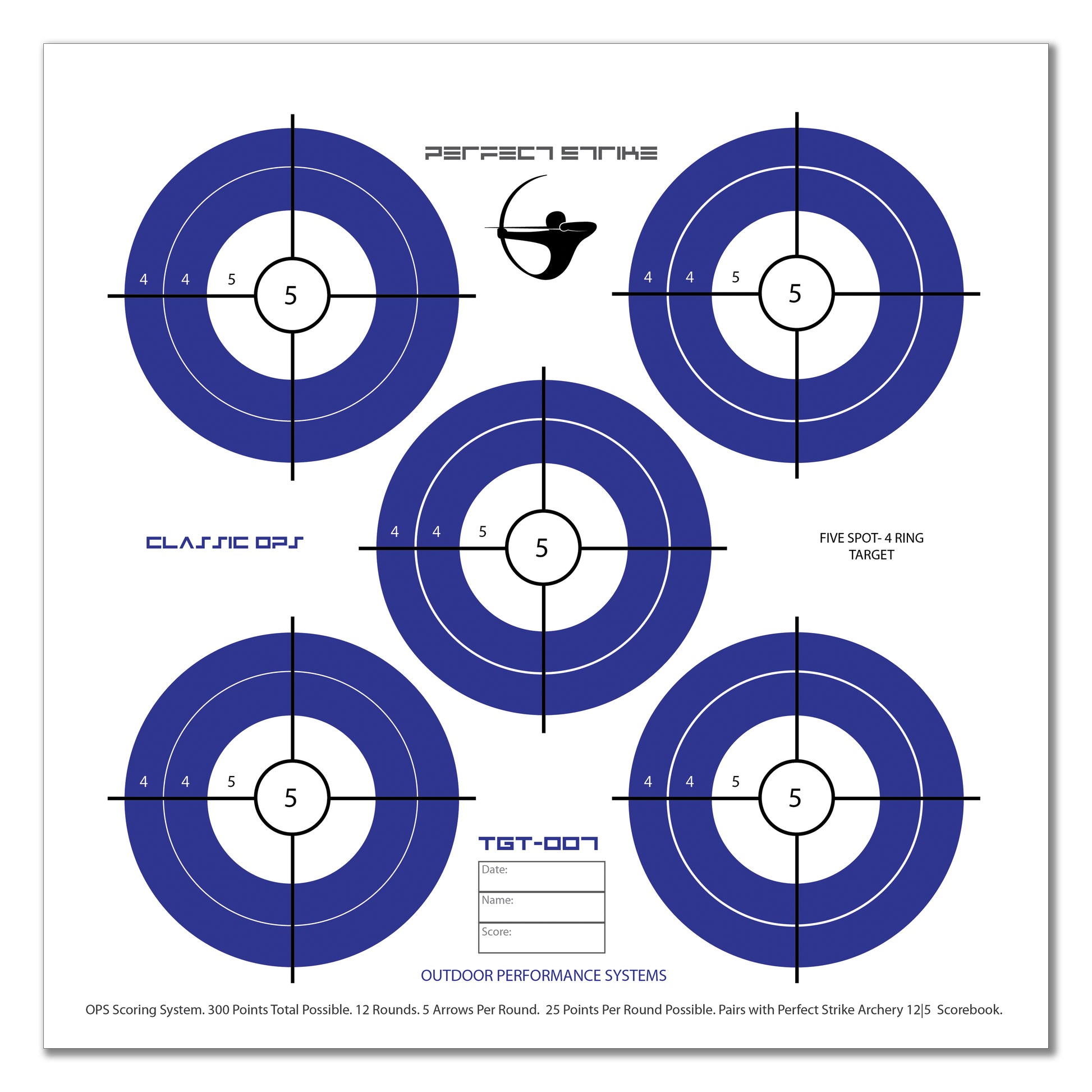 Perfect Strike ARCHERY SYSTEM Targets. CLASSIC OPS No. 007. Five Spot. 12" x 12".