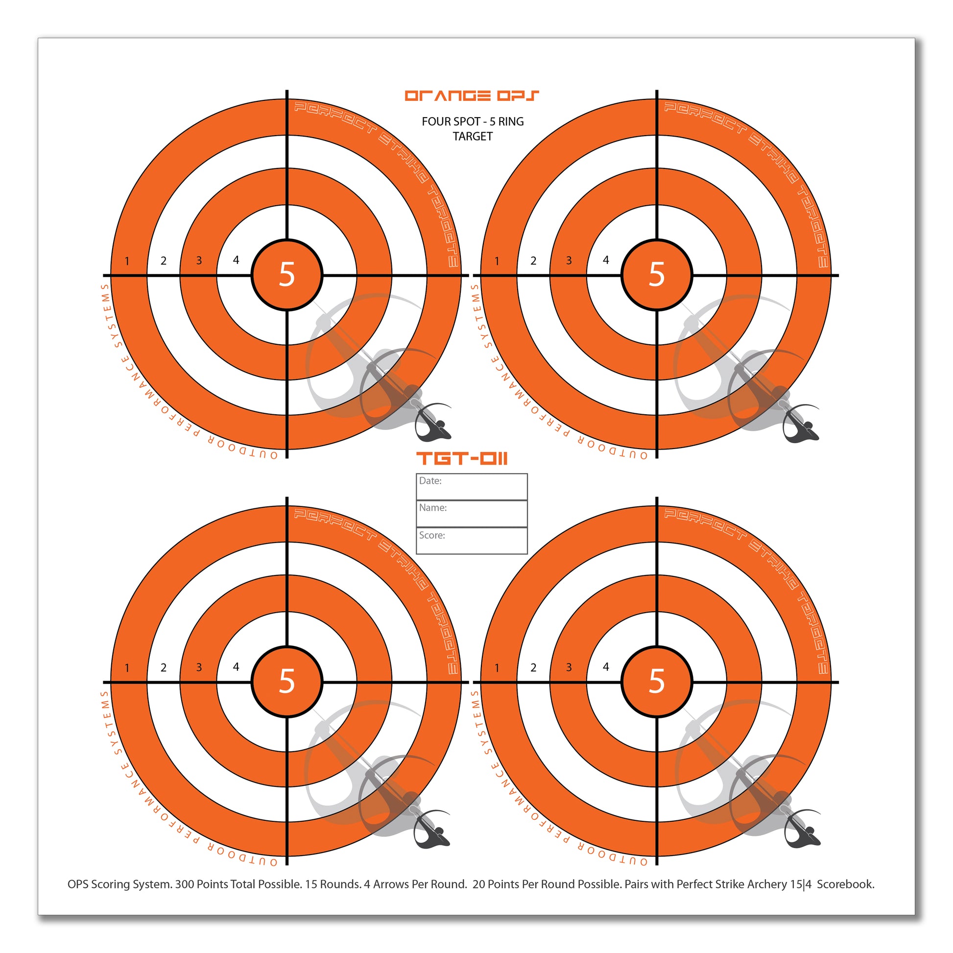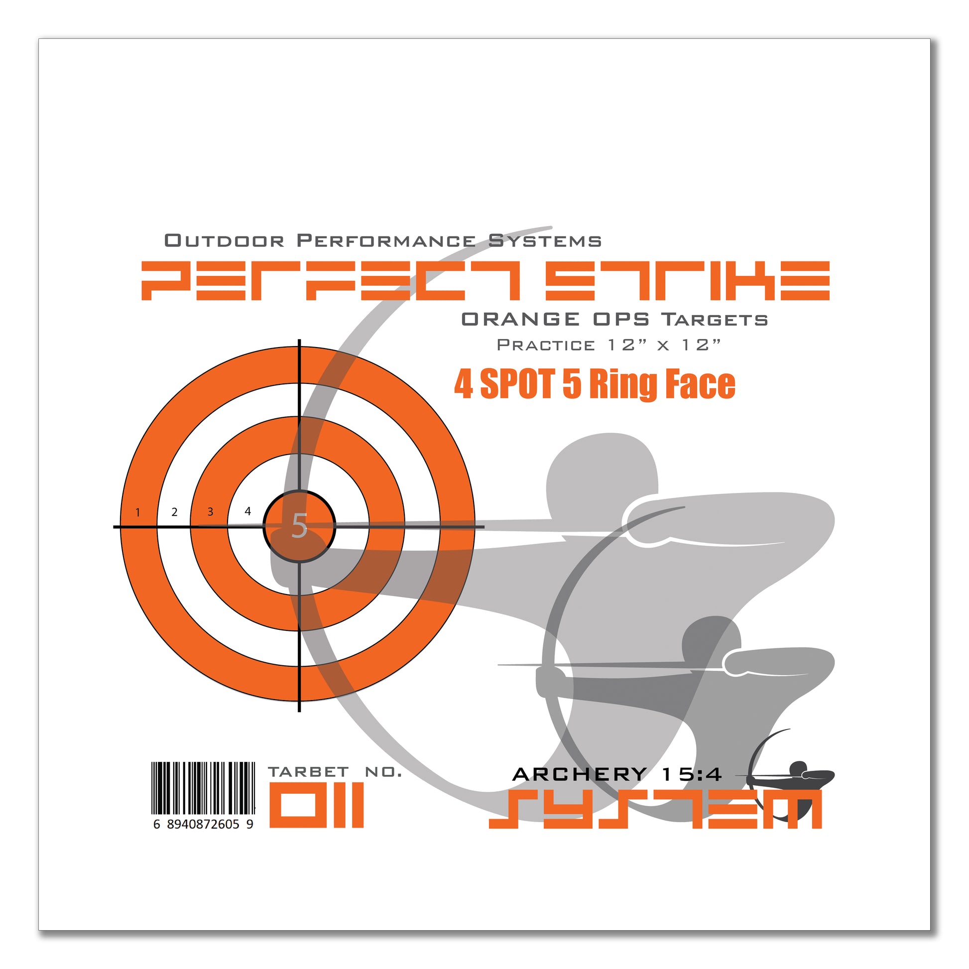 Perfect Strike ARCHERY System Targets. ORANGE OPS No. 011. Four Spot Targets. 12" x 12".