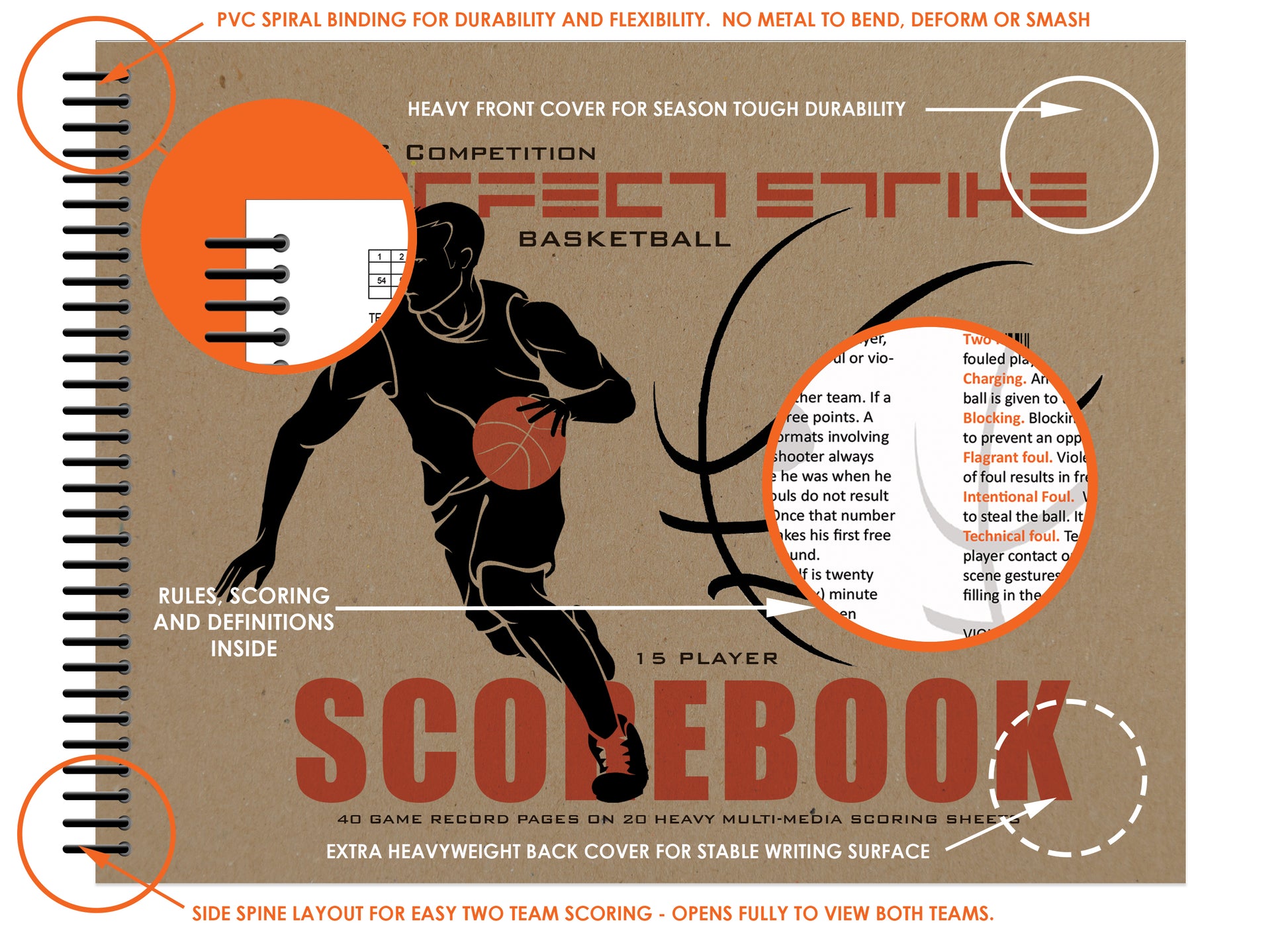 - BASKETBALL SCOREBOOK - Perfect Strike high quality, heavy duty basketball scorebook. Basketball score keeping. 8.5" x 11", Now with 40 scoring records on 20 heavy paper sheets. 15 Player. NBA, NCAA, HIGH SCHOOL and youth basketball.