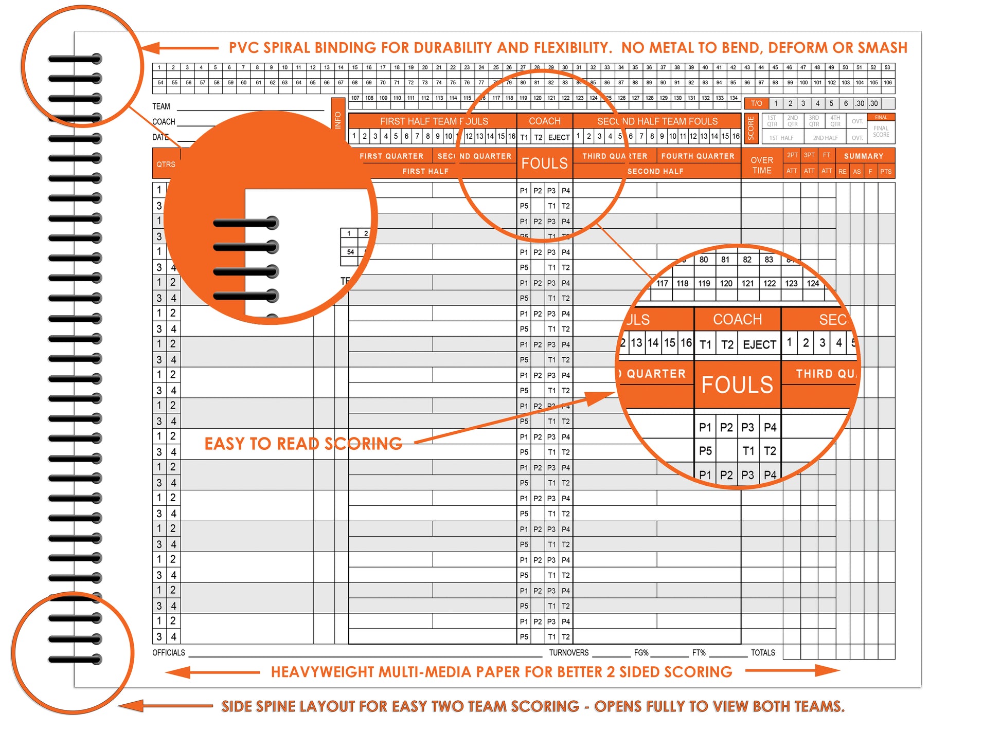 - SEASON-TOUGH COVERS – Scorebook comes with heavyweight front and back covers. The durable covers make the scoring book resistant from tearing or falling apart during a long sports season. The extra heavy back cover provides the needed support for writing and scoring in bleachers and stadium seating.