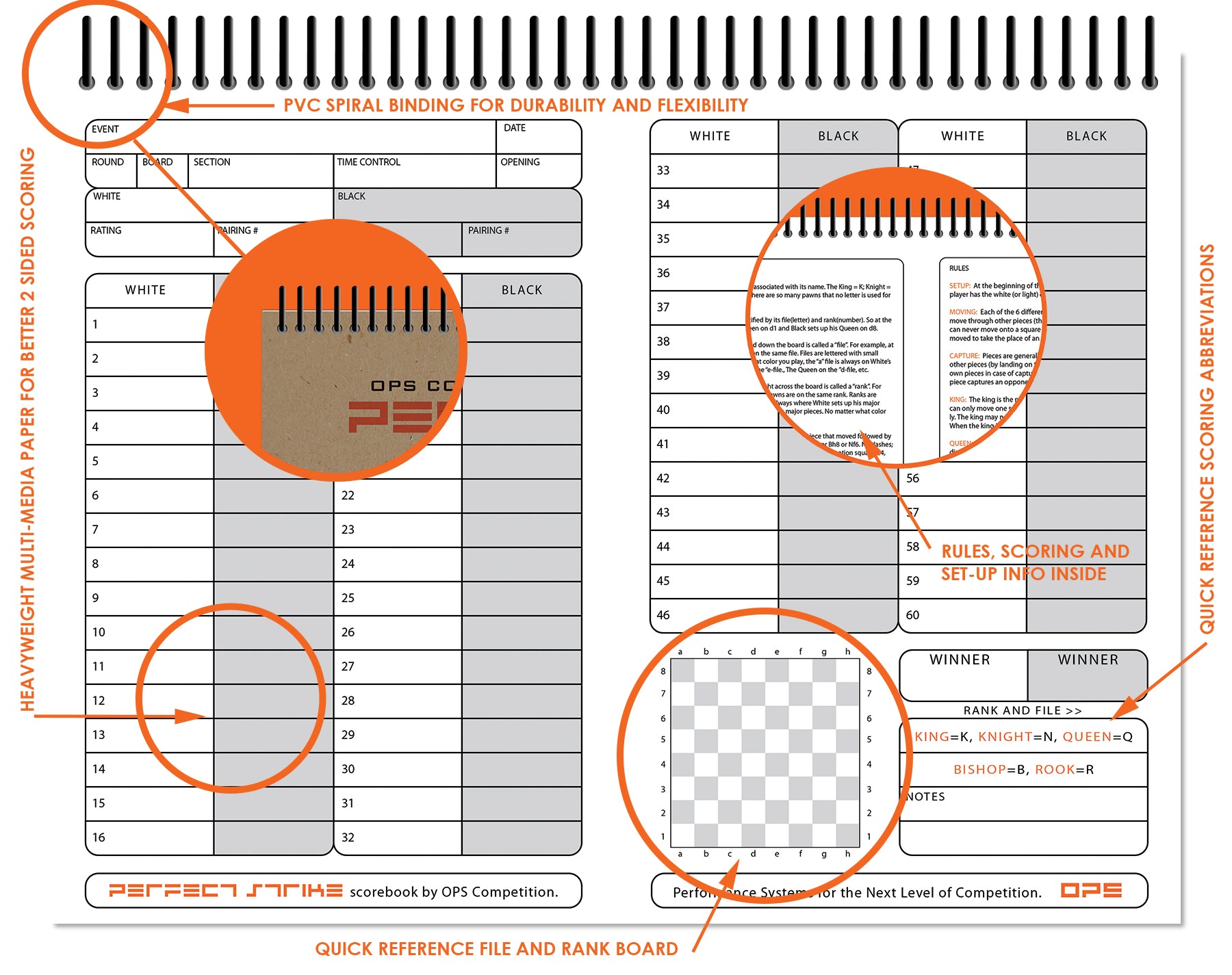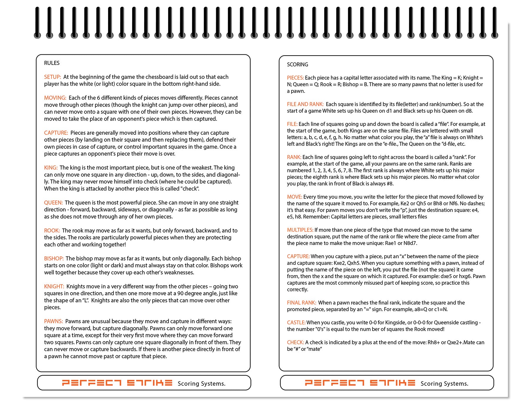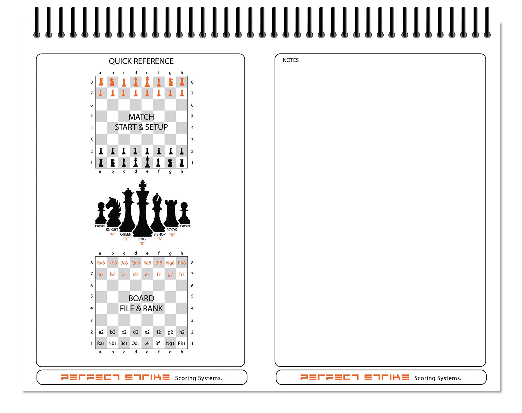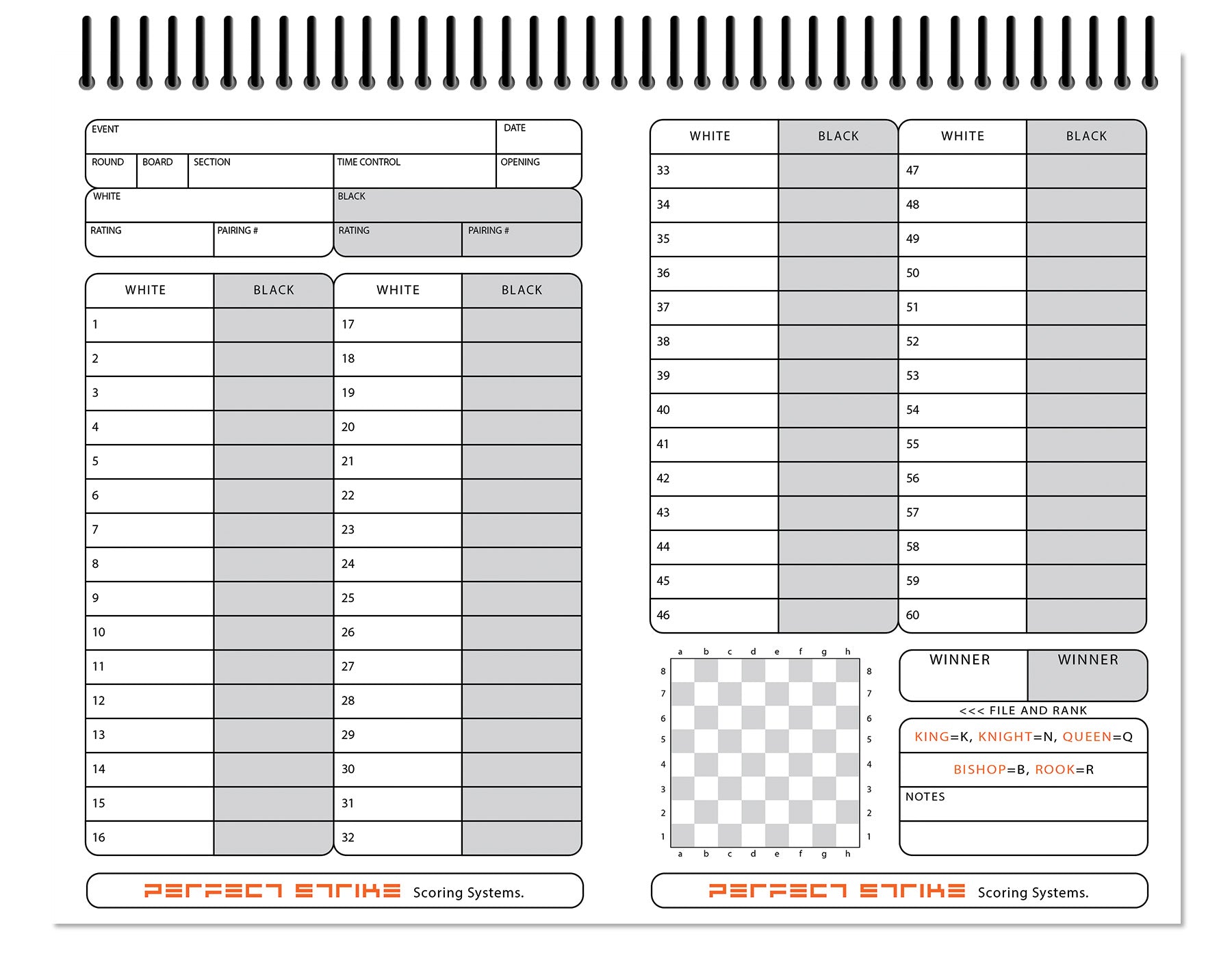 - DURABLE BINDING : Perfect Strike chess scoring books are fitted with a durable PVC spiral binding that is resistant to bending or breaking. The binding holds up better than metal binding.